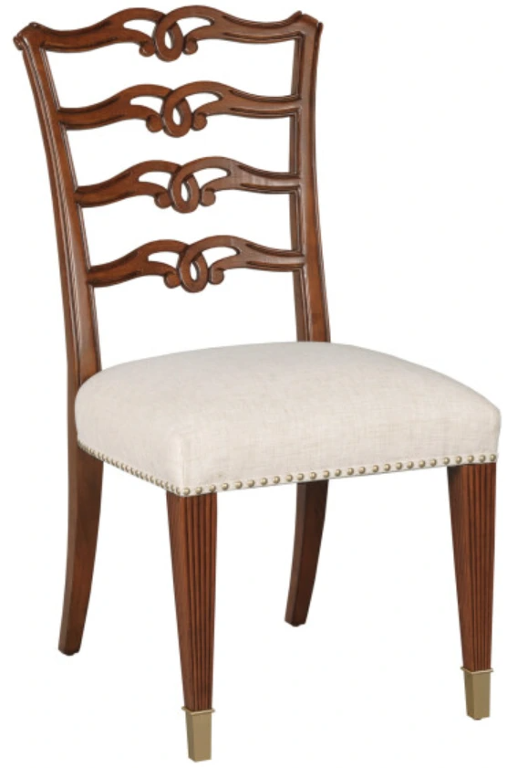 The American Drew® Addison Bartley Beige/Brown Side Chair features a beige upholstered seat with brown accents, offering both comfort and durability. Its sturdy frame ensures long-lasting use, making it a practical addition to any dining room or seating area. This chair blends well with various interiors, enhancing the space with its functionality.Read More