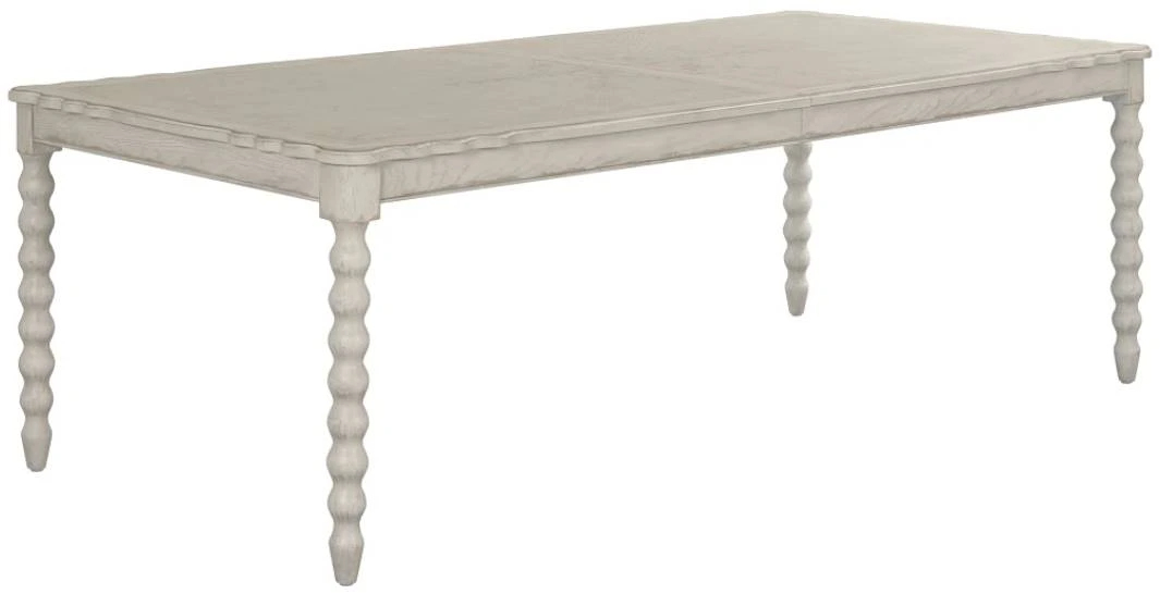 Add a touch of artistry to your dining area with our Batiste Rectangular Dining Table. This table features a hand painted design on the top, and turned legs, all adorned in a Creme finish. It comes equipped with two 18 inch leaves and a center foot for stability.Read More