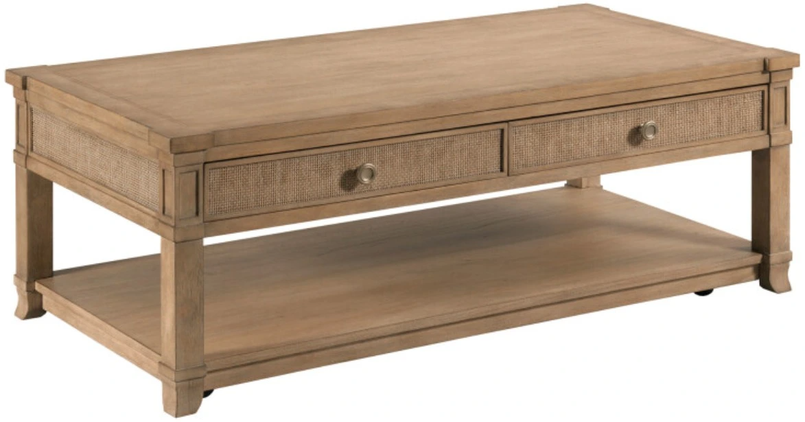 The American Drew® Chastain Woodfield Brown Rectangular Coffee Table combines elegance and functionality. With a sturdy wood construction, it offers ample surface space for decor and everyday use. Its sleek, refined design adds sophistication to any living room while providing durability and practicality for daily activities.Read More