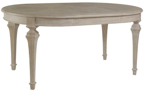 Updated traditional design crafted from Mahogany veneers, bleached Mahogany, and select hardwoods in the bianco finish, a warm gray tone with hand wire brushing. Features include a radial veneer match top with straight grain border and tapered legs. The 42-inch diameter top extends to 66-inch oval to comfortably seat six.Read More