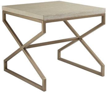 The Mahogany veneer top is available in the Bianco finish, a white wash over wood tone with hand wire brushing. The tubular steel base is available in a warm metallic finish with a hint of copper.Read More