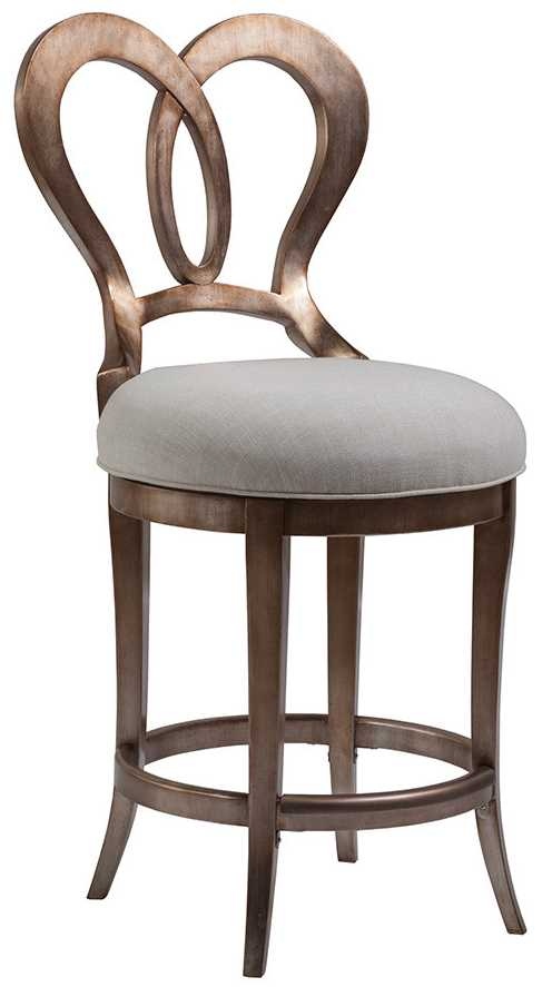 Solid Mahogany frame in a warm silver leaf finish and metal kickplate. The upholstered seat is available as shown in a linen weave with a soft hand in a natural vanilla coloration, fabric 153711.Read More