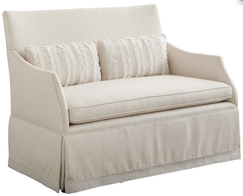 The Barclay and Butera by Lexington Portshead Settee offers a perfect balance of comfort and elegance. Its refined design and luxurious upholstery make it an ideal addition to any space, providing both style and versatility. Perfect for smaller areas, this settee enhances your room with timeless appeal.Read More