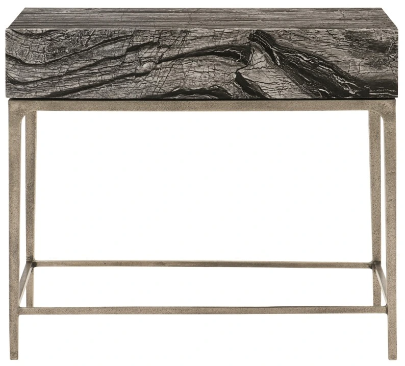 Full of contrast and drama, the Linea nightstand pairs boldly patterned Black Forest marble with textured cast aluminum. With its deep charcoal background and snow-white striations, the marble lends a high-end, elegant look. Adding layers of subtle sophistication, the cast aluminum base features a Textured Graphite finish obtained through a multi-step process.Read More