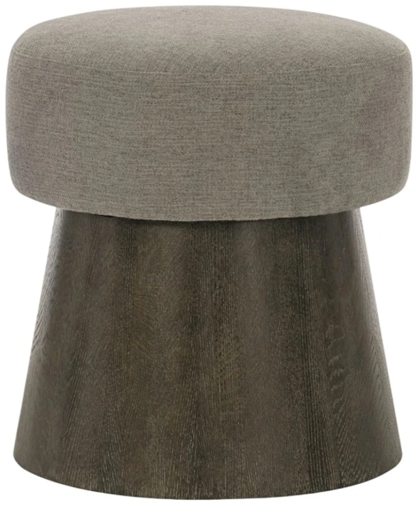 With an artistic, modernist sensibility, the Linea round bench experiments with function and form. In this unique geometric design, a round upholstered seat rests on a conical base featuring wire-brushed oak veneers. The cerused charcoal wood finish pairs elegantly with the gray fabric tone.Read More