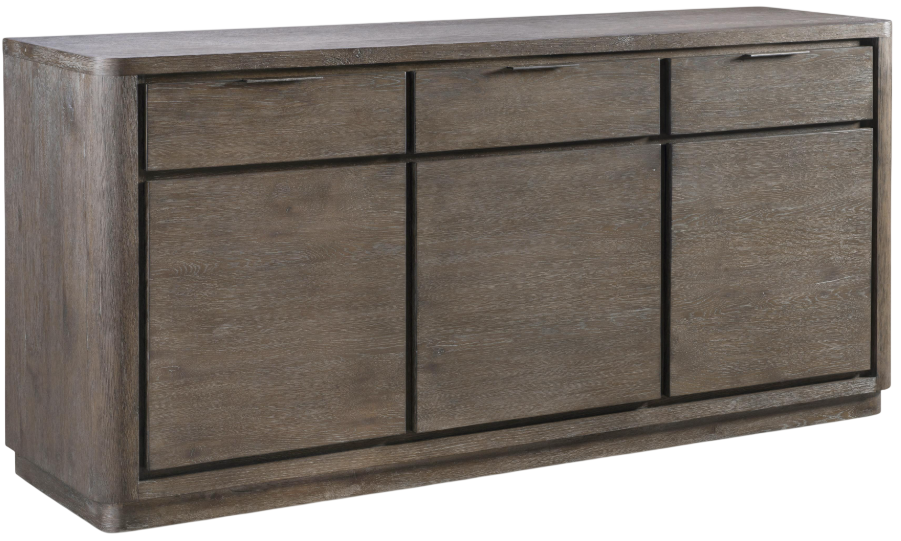 The Outline buffet defines a new look for modern minimalism. Three drawers and three doors in Cassel finish have a dimensional look against a recessed backdrop, highlighted with textured metal pulls. Corners are rounded, and lines are streamlined for a seamless sophisticated look.Read More