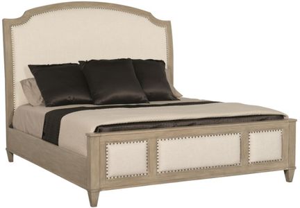 A fresh take on a classic form, the Santa Barbara panel bed blends refined details with a clean, modern aesthetic. The headboard and footboard showcase inset upholstered panels with nailhead trim. The shaped frames of the headboard and footboard are created with wire-brushed oak veneers in neutral sandstone finish.Read More