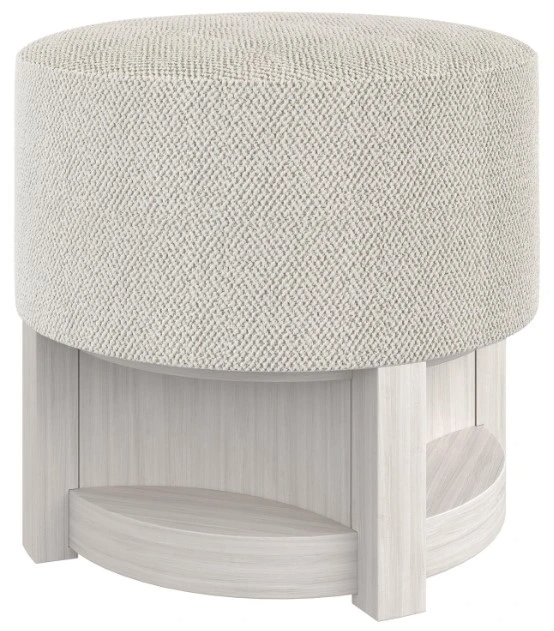 The Stratum bench showcases a distinctive wooden base formed with curved sections and straight lines and finished in Mist. The geometric design supports a round seat with an upholstered top and sides.Read More