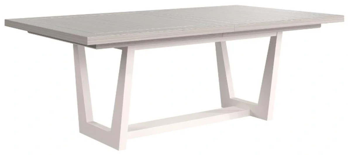 The Stratum dining table combines a modern sensibility with a hint of glamour. The top, finished in Mist, is highlighted by an inset inner border of Polished Nickel. An open table base with angled supports is finished in Fossil faux stone.Read More