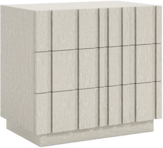 Rhythmic vertical panels of wood create a beautiful depth and dimension on the Tempo nightstand. Crafted of wire-brushed oak in the Larza finish, the nightstand has three push-to-open drawers. It offers a relaxed look with an elevated style.Read More