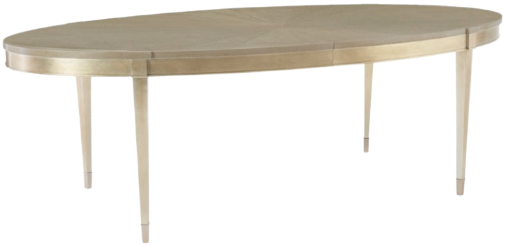 You’ll be inspired to gather friends and family more often with this lovely oval dining table. Its exquisite top features radial-matched Fumed Figured Tiger Maple veneers and is finished in smoke with taupe silver leaf accents.Read More
