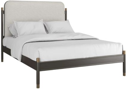 Metal campaign beds of the past get a new spin with this attractive mix of metal and upholstery in contrasting colors and textured finishes. Ivory linen-blend micro-ribbed fabric is applied to the headboard, footboard and side rails.Read More