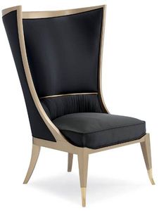 Expertly trimmed with a metal bar finished in champagne gold, this elegant detail matches the metal ferrules on its front feet. Inspired by the glamour of the Hollywood regency era, this signature chair is simply magical, masterfully fresh, and all Caracole refined.
