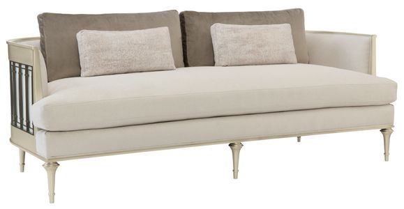 Crisp and clean, this stylish sofa offers a fashion-forward mix of materials that are distinctly Caracole. A stunning, wraparound detail in tungsten metal was inspired by an iron gate we noted while traveling.Read More