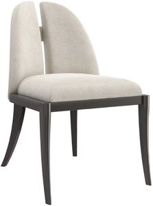 A sublime reflection of familiar forms, this dining chair depicts the delicate balance between subtlety and strength. Its delicate silhouette features a softly curved, split back, joined at the middle with a textured metal accent in lightly brushed chrome. Airy and light, with a substantial presence, it offers casual comfort with an air of elegance.Read More