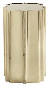 Shiny Whisper of Gold metal has been crafted into a lyrically scalloped, columnar side table. The slightly raised edge around the top keeps drinks in place. This piece is perfect for reflecting the party around you.Read More