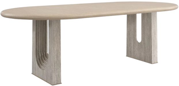 Drawing the eye: parsons-style legs with dramatically stepping arches, meticulously crafted in Silver Travertine stone and trimmed in Lucent Bronze plated metal.