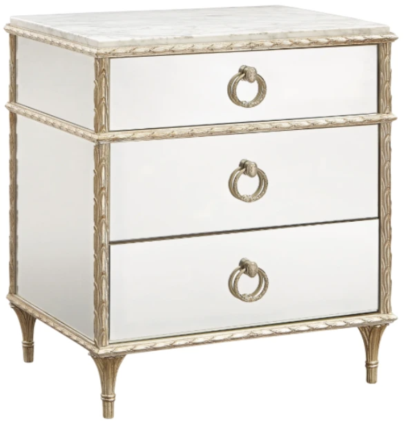 An elegant reflection of all things baroque, this extraordinary three-drawer nightstand will add light and glamour to any bedroom. Exquisitely crafted with a mirrored front and sides, it features laurel leaf carvings inspired by an antique baroque picture frame and finished in aglow.Read More