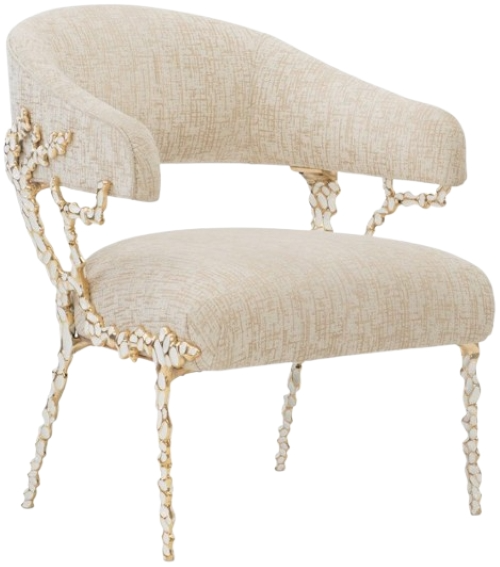 Bold in character, this dazzling chair is unique in every way. Its one-of-a-kind shape was born from design exploration of the organic beauty and inspiration found in nature. Cast in solid brass and finished in Gold Brush with white enamel, it has the feel of branches or coral reaching up toward the light.Read More