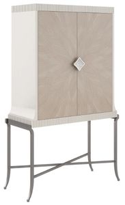 Radiating beauty, both inside and out, this fashion-inspired bar cabinet makes an alluring addition to living and dining interiors. Balanced on a slender metal frame, it features tall doors exquisitely crafted in Koto veneers to create a romantic rosette pattern, artfully accentuated by a beaded wood detail in Pearly White paint.Read More