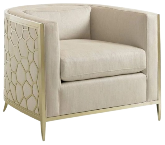 Get the party started with a chair they’ll be talking about long after they leave. We design our product with our clients’ satisfaction in mind. Custom engineered frame wrapped in a gold bullion metal tone. A micro-herringbone pattern in off-white linen-blend fabric offers simplistic beauty.Read More