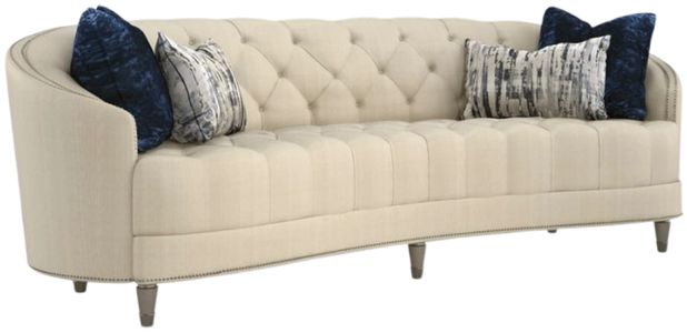 Indulge in the timeless elegance of the Caracole Intl Compositions Sofa! Embrace sophistication with decorative nailhead trim and chic metal ferrules on the front feet. Experience ultimate comfort with a no-sag seat, plush poly foam cushion, and fiber-filled pillows. Elevate your décor and unwind in style.Read More