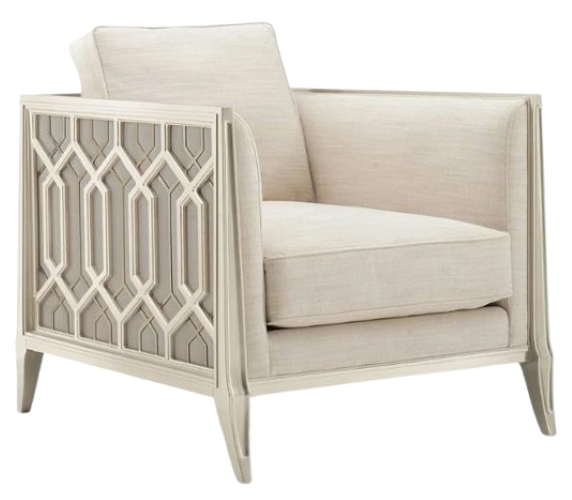 On a balcony railing of a former palace converted to a hotel in India is a carved pattern that was the muse for the pierced design found on this chair’s outer arms.Read More