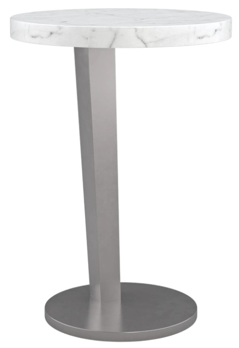 There when you need it, this easy-to-move accent table adds depth in a mix of metal and stone. A sleek metal base in Smoked Stainless Steel paint is topped by white Carrara marble for an elevated touch.Read More