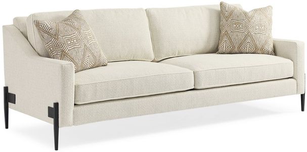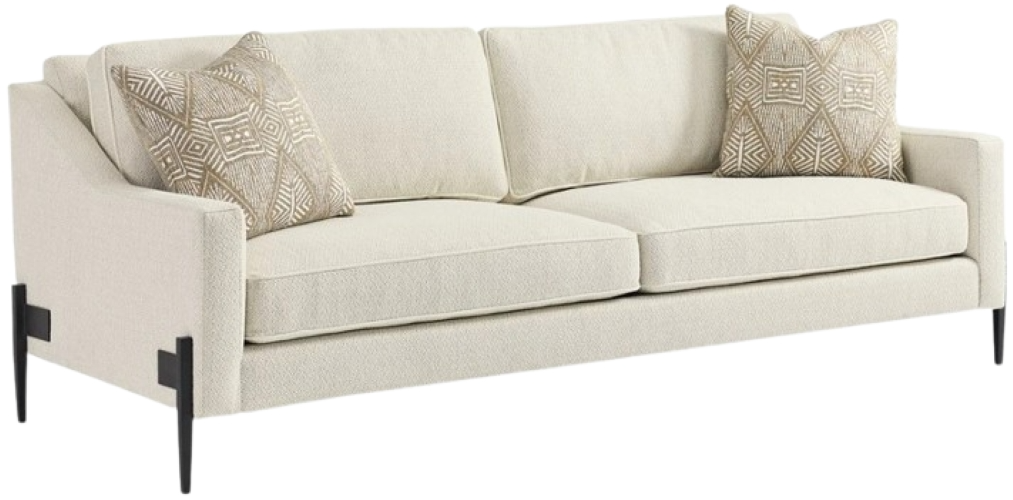 Modern meets classic in the perfect remix of this marvelous sofa. Its timeless silhouette feels updated and relevant with a suspended frame, metal flange detailing, and cast-metal tapered legs—all wearing a bold Black Iron finish.Read More