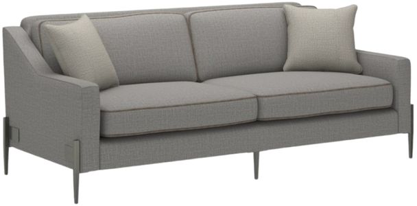 Updated and relevant, this fully upholstered sofa is suspended on thin, tapered metal legs in Smoked Stainless. This piece features a track arm and lower back. This silhouette is upholstered to perfection in a gray wool blend woven with a contrasting tan leather welt.Read More