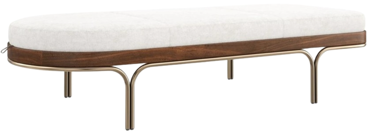 Form and function in perfect cadence: the Rhythm chaise introduces a relaxed yet refined aesthetic to living interiors. Covered in a soft, wool-like fabric with a sleek base in Natural Walnut and Lucent Bronze Metallic paint.Read More