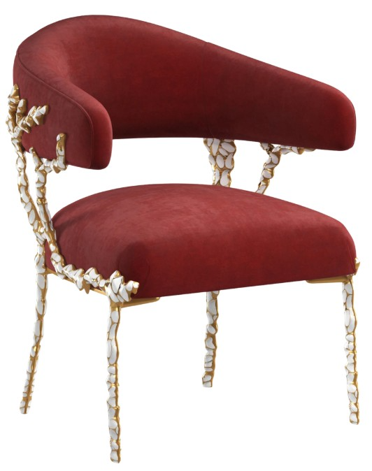 Bold in character, this dazzling chair is unique in every way. Its one-of-a-kind shape was born from design exploration of the organic beauty and inspiration found in nature. Cast in solid brass and finished in gold brush with white enamel, it has the feel of branches or coral reaching up toward the light.Read More
