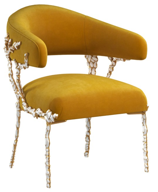 Bold in character, this dazzling chair is unique in every way. Its one-of-a-kind shape was born from design exploration of the organic beauty and inspiration found in nature. Cast in solid brass and finished in gold brush with white enamel, it has the feel of branches or coral reaching up toward the light.Read More