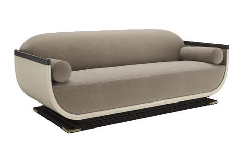 A modern interpretation of classic Roman shapes, this sofa is remarkable for its length and deep-scooped wood frame with an Ivory Craze crackled finish that is trimmed with Brushed Gold paint. The frame is perched on a wood-tiered base in Charred Bark with Brushed Gold metal corner appliques.Read More