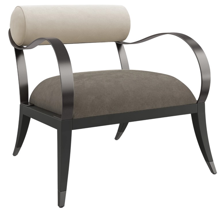 Quintessential Caracole, this sculptural chair introduces an airy silhouette, articulated by ribbon metal arms and a floating back and seat. Every detail is intentional, from the slender dowel that neatly secures the bolster pillow, to the outward turning, tapered wood legs capped in brushed deep bronze metal.Read More