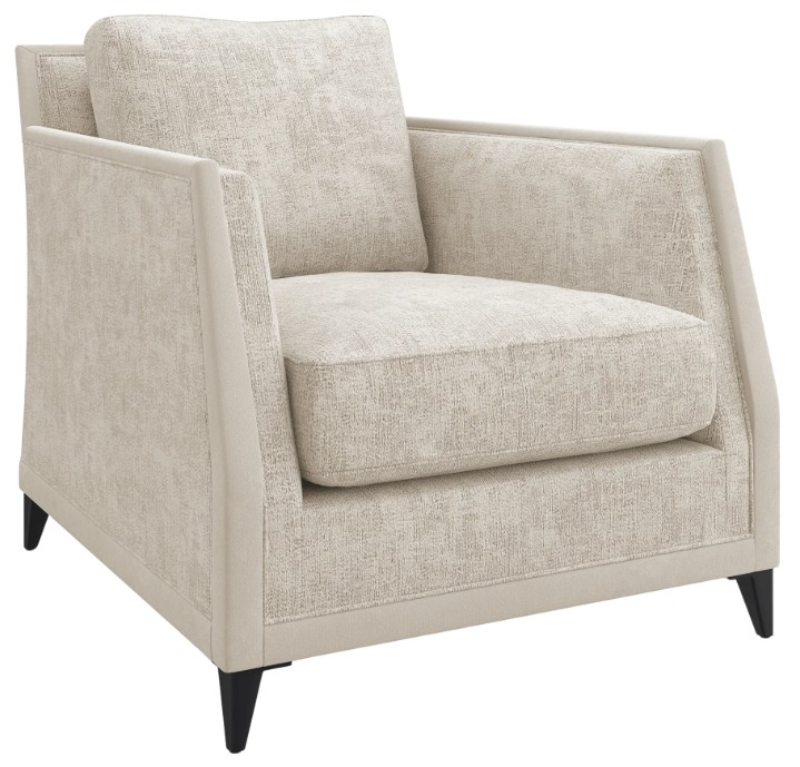 Meticulously tailored yet beautifully worn in a distressed chenille fabric, this versatile chair introduces a classic silhouette with art deco influences. Accentuating subtly angles and a sophisticated profile, a micro suede border lends tonal contrast and texture, warmly complemented by tapered feet in a brushed deep bronze metal.Read More