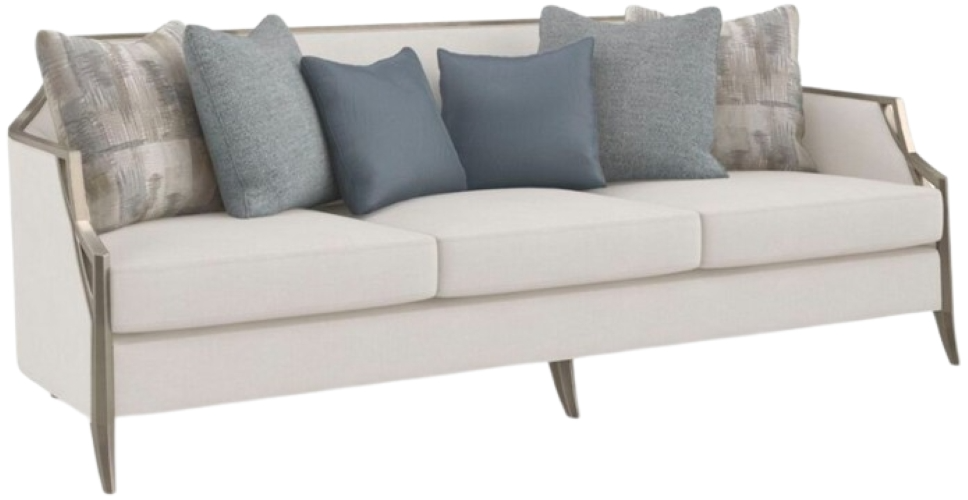 Make an elegant statement with this unforgettable sofa, eloquently mixing classic and contemporary design details. A metallic charcoal leaf finish accentuates its wood-trimmed silhouette, made modern with a carved crisscross pattern that draws the eye to gently sloping arms and splayed legs.Read More