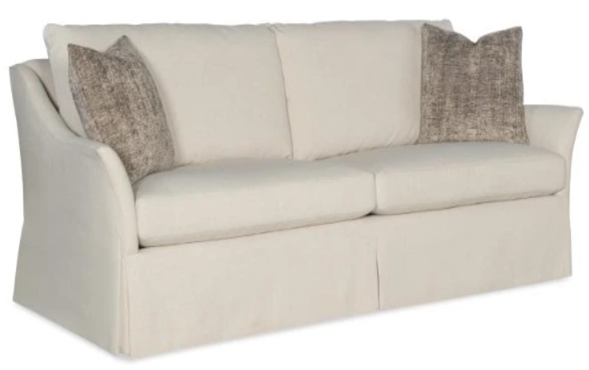 A Jillian Skirted Sofa is a piece of furniture that a few people can comfortably sit on together with a loose seat cushion and fiberdown back fill. Family might pile on the sofa to watch scary movies and eat popcorn.Read More