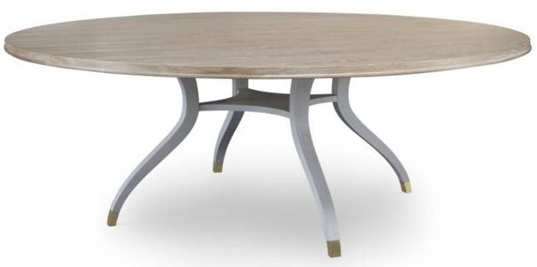 Accent your indoor area with the Century® Maison Polished Nickel 47" Round 84" Dining Table. This table will give you a relaxed dining experience. Add this piece to your room decor and elevate the look of your space.Read More