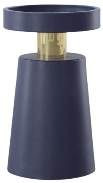 Wrapped in a navy leather with a antique brass collar