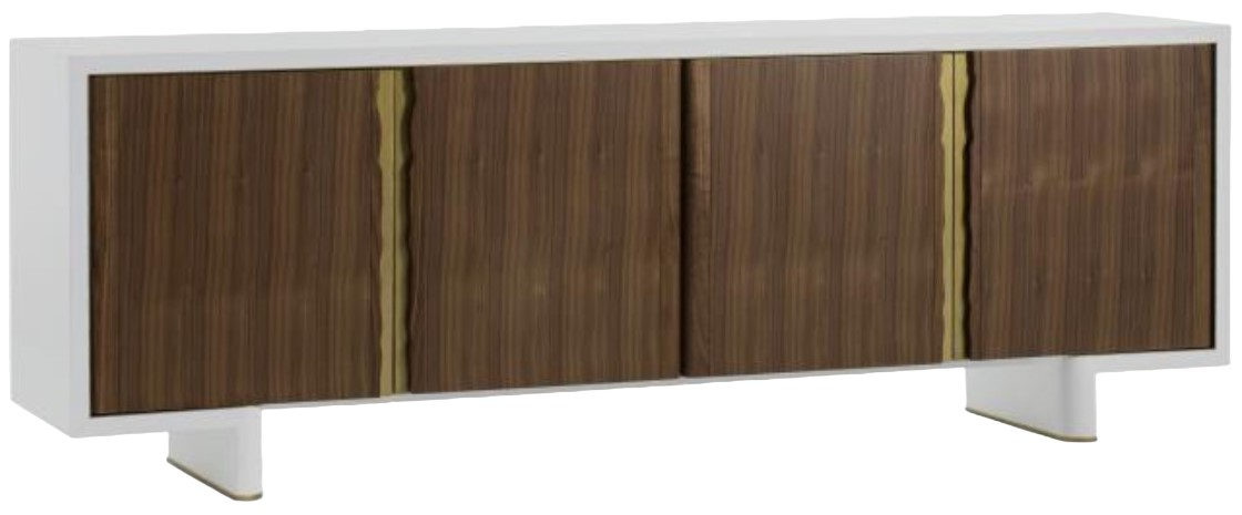 Named after the Japanese Art of repairing broken pottery by mending the areas of breakage with lacquer dusted or mixed with powdered gold and silver this credenza features a white lacquer finished exterior with brass finished metal trim on walnut veneer doors.Read More