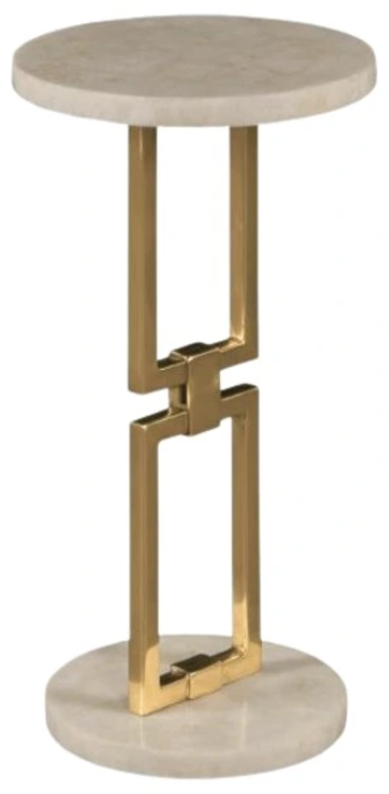 This beautiful statement martini table was inspired by classic jewelry links. Open cast brass fretwork base with a floating top made of crystal stone quartz in warm ivory tones. Also available as a large cocktail, smaller cocktail, side table, console and desk.Read More