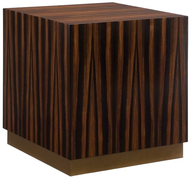 The Banks Cube End table can be displayed in smaller spaces by itself or bunched as a pair, or 3 or 4 together in larger rooms. It also works as a taller cocktail table. This modern Mid Century design features Amara straight grain veneer and a metal base finished in a warm bronze.Read More