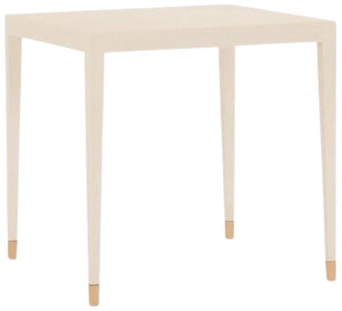 A traditional form wrapped in a striking ivory faux shagreen leather transforming it into a more modern look that complements any interior style from traditional to contemporary. Features include delicate tapered legs with satin brass finish ferrules. Matching Monroe pieces available.Read More