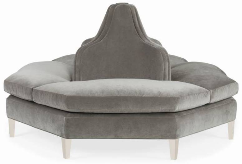 "This is my take on the traditional entry settee. Its swirling elegance and practicality, simple kick pleat, and button detail give this settee a sophisticated aristocracy! I can easily see shopping bags tossed on it in a dressing room or used as the perfect centerpiece to an entry where the family dog curls up waiting for front door arrivals." -Windsor Smith