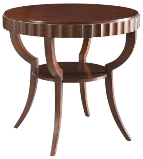 Round lamp table with shaped tapered legs, mid-shelf, and contemporary variation of the classic dentil molded aprons. The Masquerade Round Lamp Table is available for custom order, allowing you to select from a wide range of finishes to match your personal aesthetic.Read More