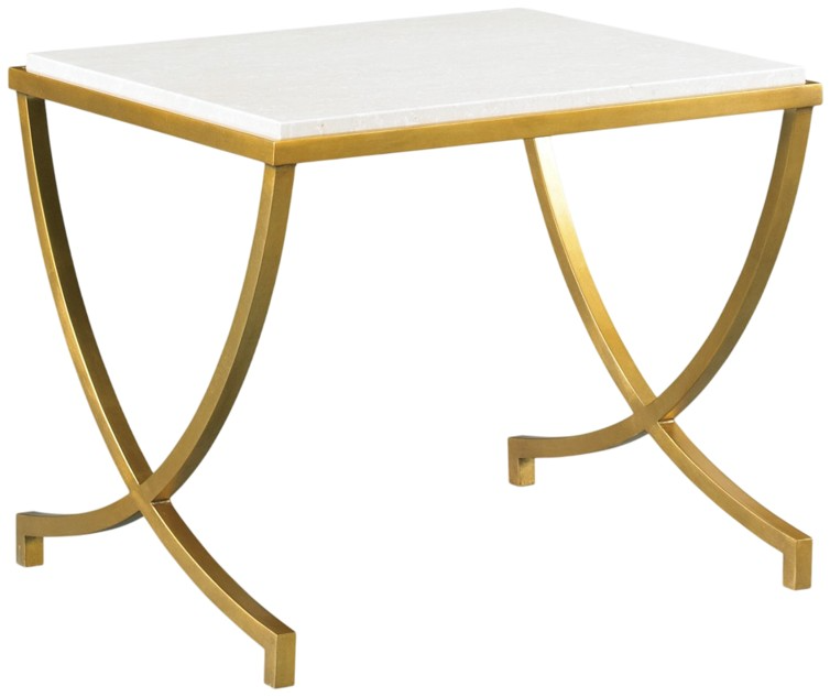 The Kaeden bunching table's deco style metal base is finished in an antique gold leaf and contrasted with a white travertine stone inset top. This fashionable design makes it a great stand-alone accent table or provides a varietal cocktail table opportunity when used in multiples.Read More