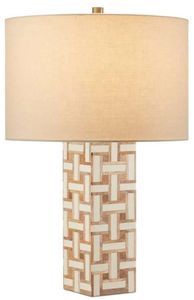 The Aarna Cream Table Lamp, with its basketweave pattern, is made of pieces of wood interspersed with strips of ivory composite. The contrast of the textural woodgrains and the sleek composite creates an interesting aspect to this design.Read More
