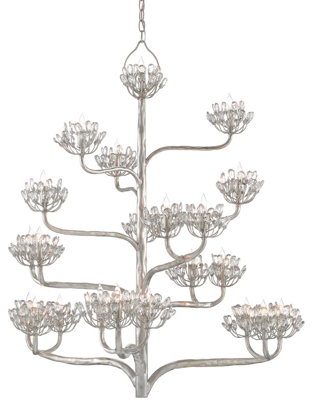The Agave Americana Silver Chandelier is a grand light fixture inspired by the Century plant of the American desert. The 22 lights are surrounded by clusters of faceted crystals. The metal in a contemporary silver leaf finish give off a lovely glow. The silver chandelier is in our Marjorie Skouras CollectionRead More