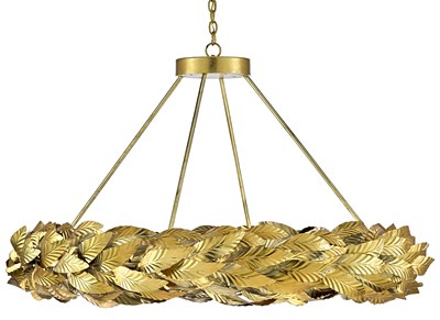 Our Apollo Chandelier is shaped like a crown made of laurel leaves. The design is brilliant in a mix of contemporary gold leaf and painted gold finishes. Because the leaves are hand-applied, slight variations in shape may exist on this gold chandelier. We also offer the Apollo as a small chandelier and a wall sconce.Read More